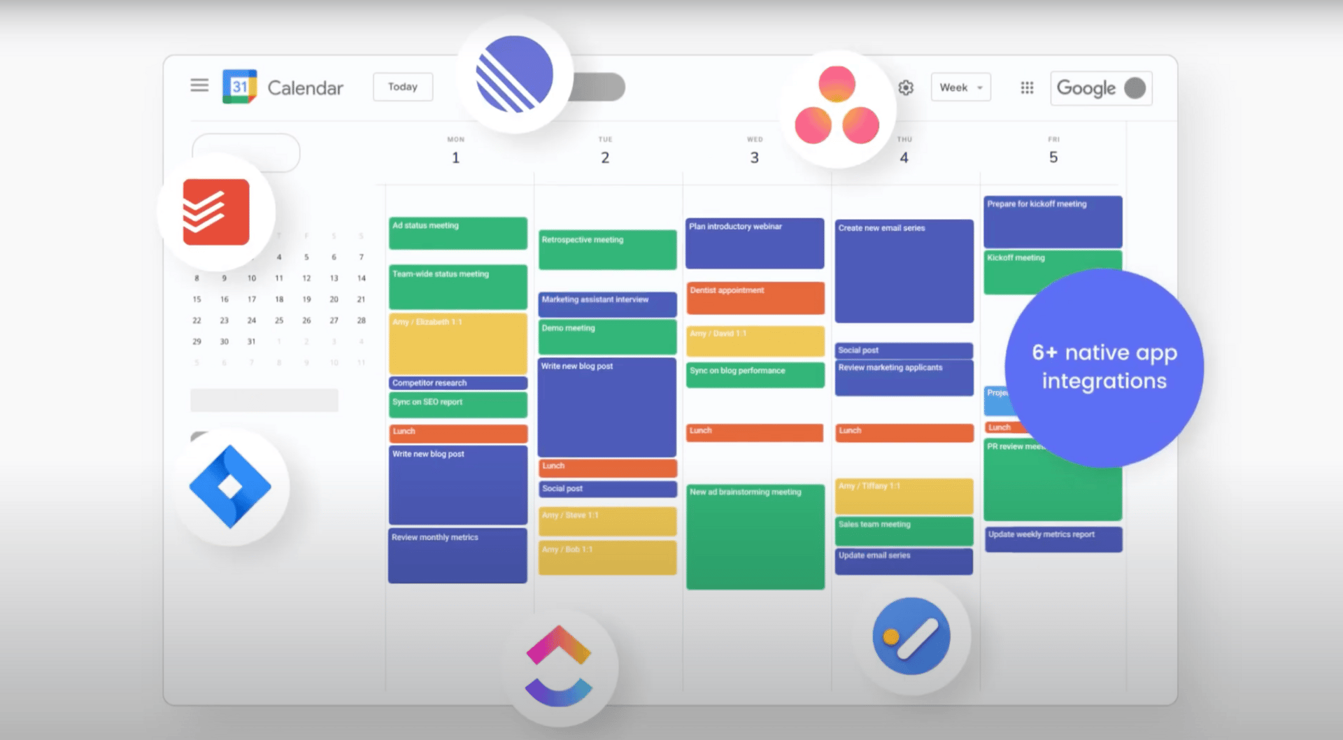 Self-serve onboarding, instant “import calendar” workflows, with nudging users to invite team and set up integrations