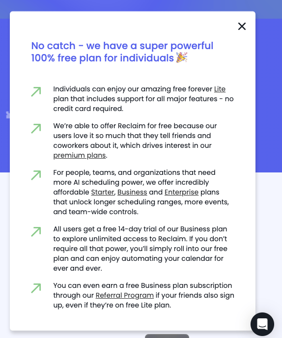 Deep Integration Loop: Reclaim gets “sticky” as users connect more calendars, tasks, and channels (Slack, Jira, Zoom, Asana, etc.), making it a center for action